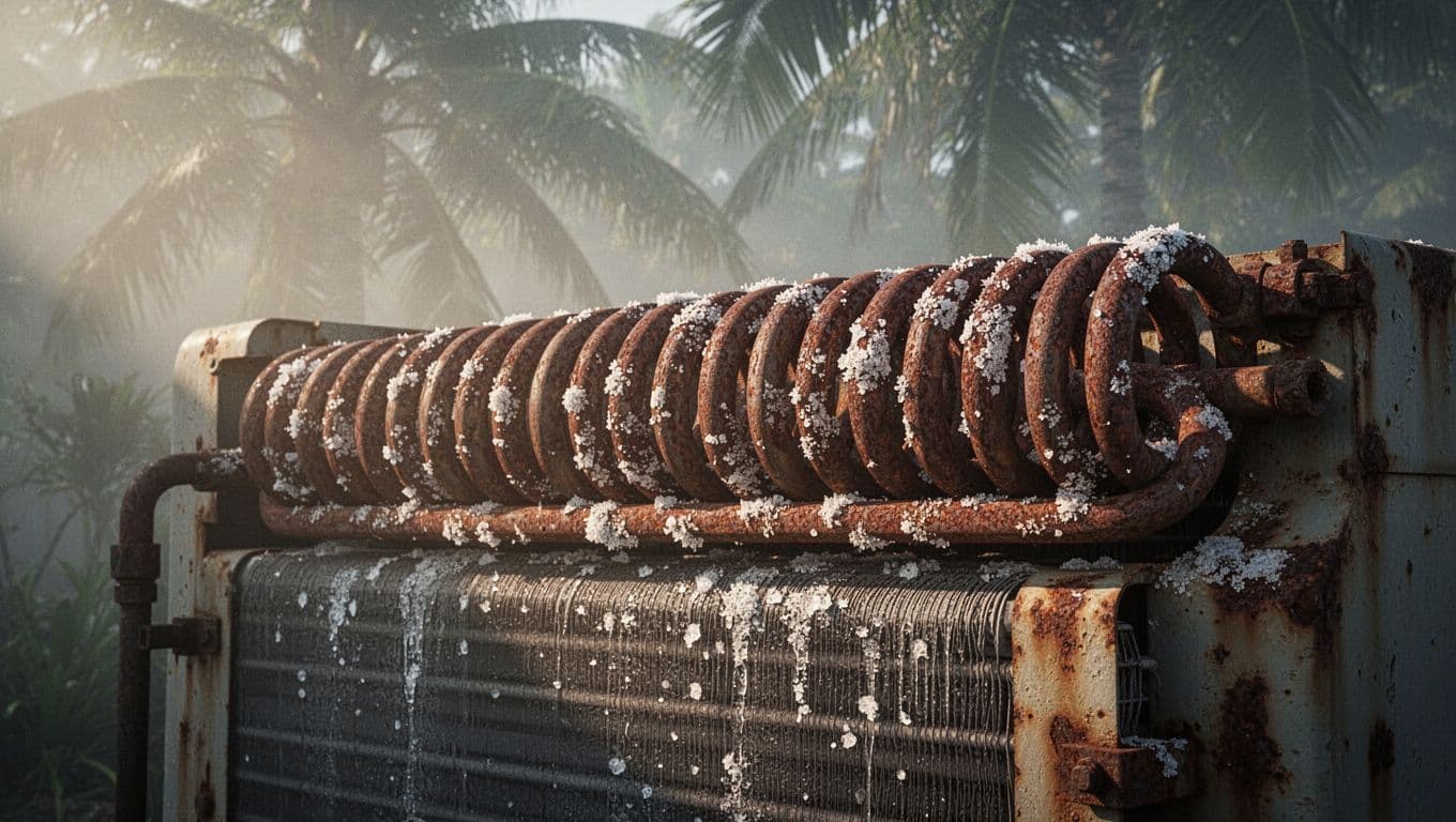 Coastal salt air corrodes coils and fins quickest. It shortens life by years compared to inland spots. Storms like hurricanes strain electrics and flood pads.