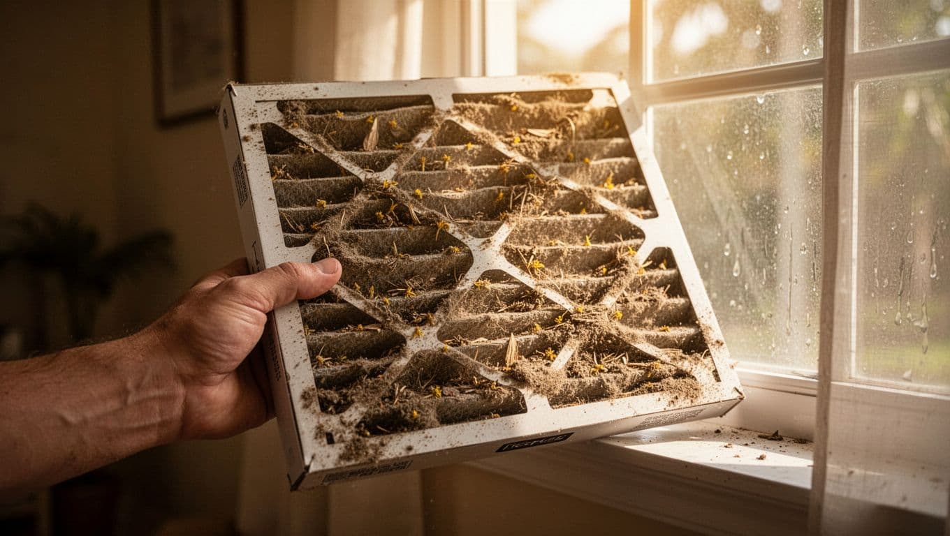Humidity in Cape Coral traps moisture in your AC filters. Dust, pollen, and salt air from the coast pile on quick. A clogged filter blocks airflow, so your unit works harder.